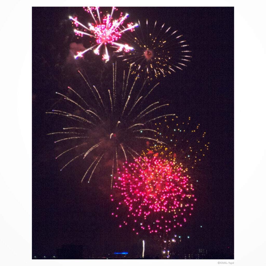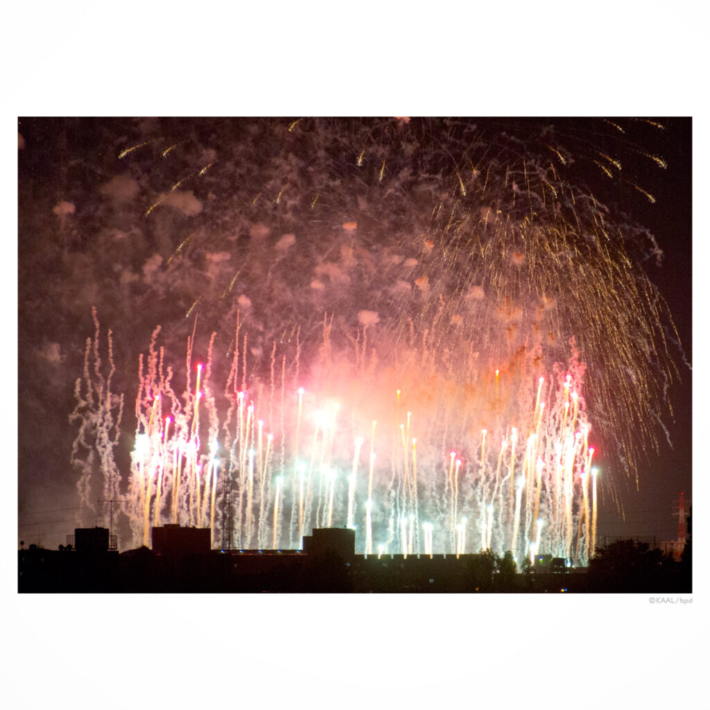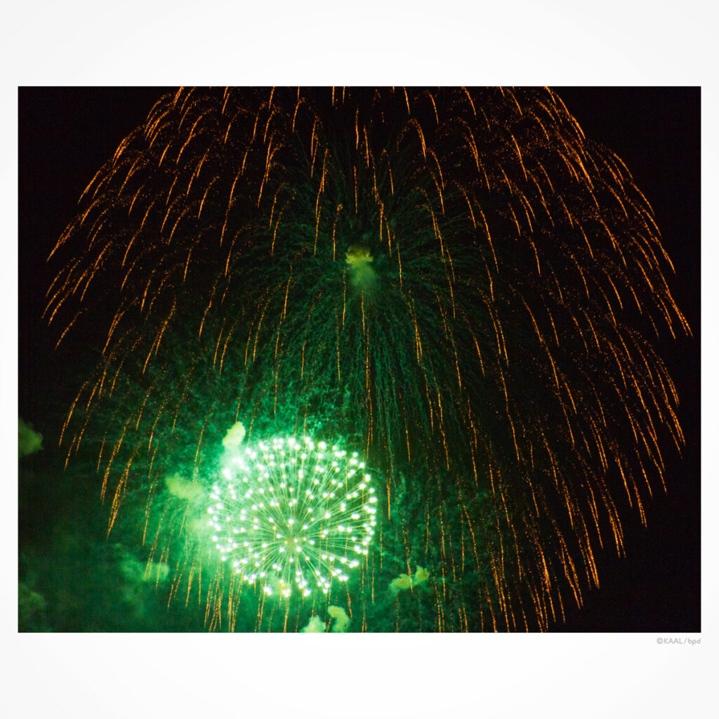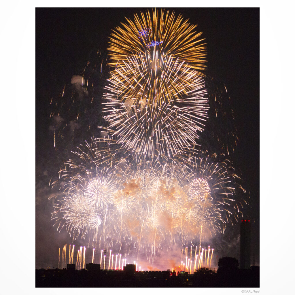 毎年見ていますが、年々「色が鮮やかになっている」と思います。1つの花火でも広がりながら段々と色が変化したり。