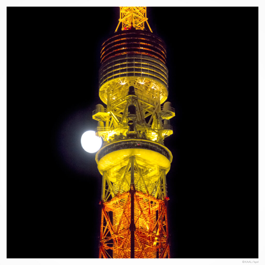 お月様の右に見える円形の展望台「トップデッキ(250m)」には上がった記憶が無い。「メインデッキ(150m)」には何度も上がったがかなり恐ろしかった。でもいつかはチャレンジしてみたい。